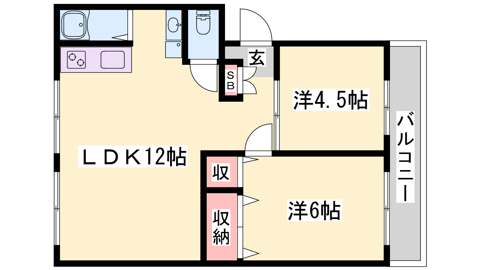 - LDK12帖、洋室4.5帖、洋室6帖