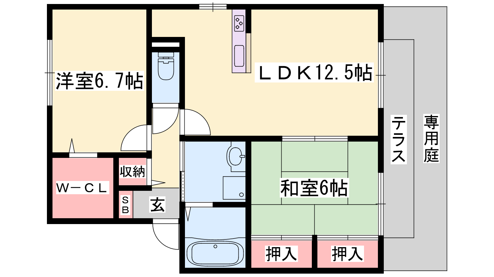 - LDK12.5帖、洋室6.7帖、和室6帖