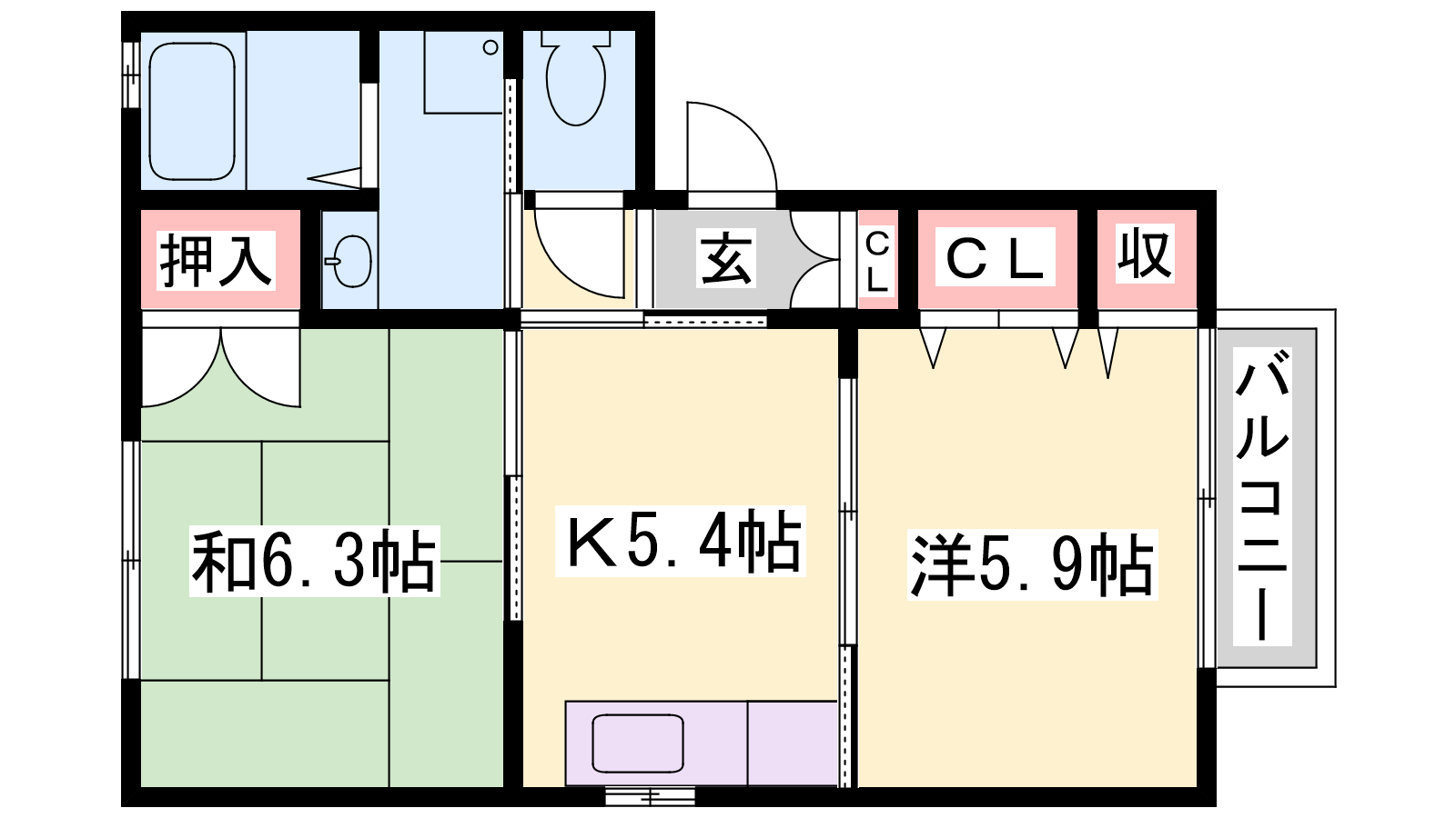 - K5.4帖、和室6.3帖、洋室5.9帖