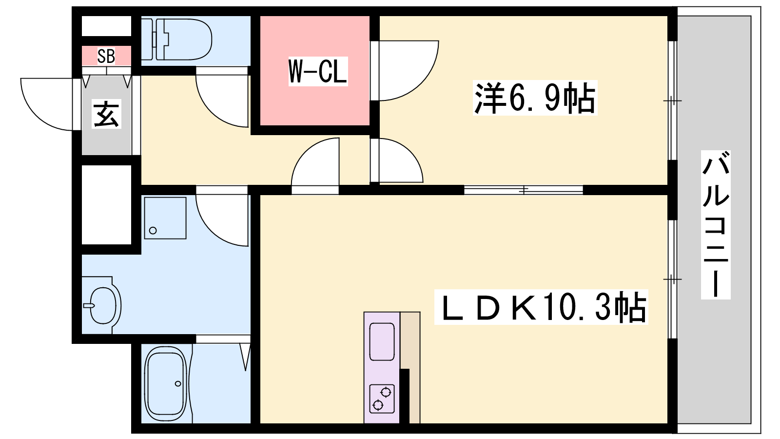 - LDK10.3帖、洋室6.9帖