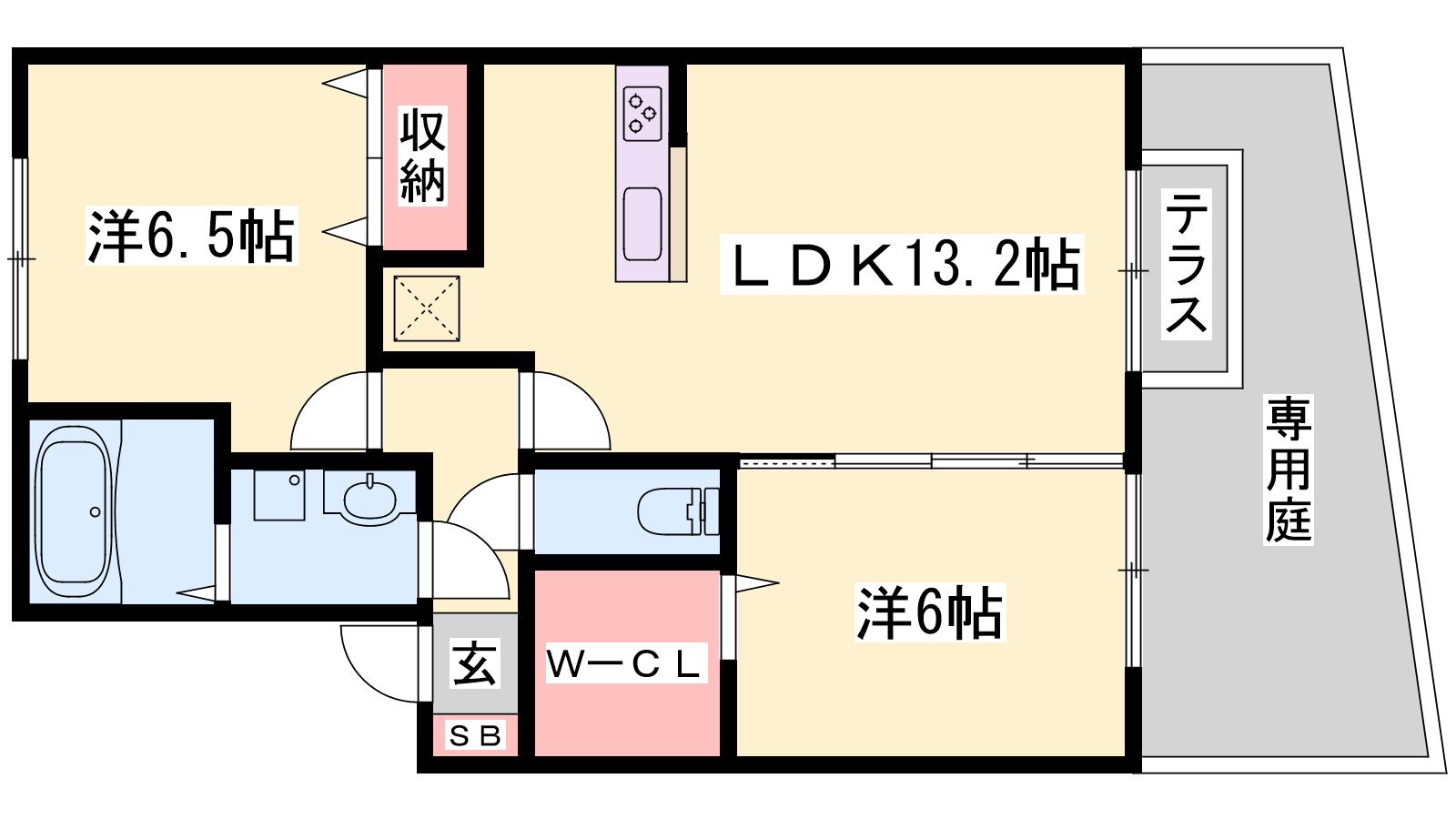 - LDK13.2帖、洋室6.5帖、洋室6帖