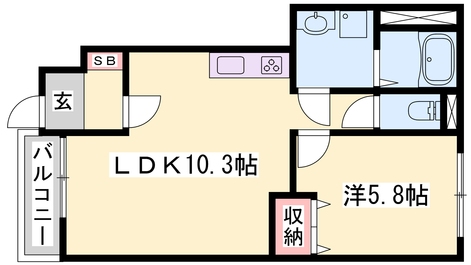 - LDK10.3帖、洋室5.8帖