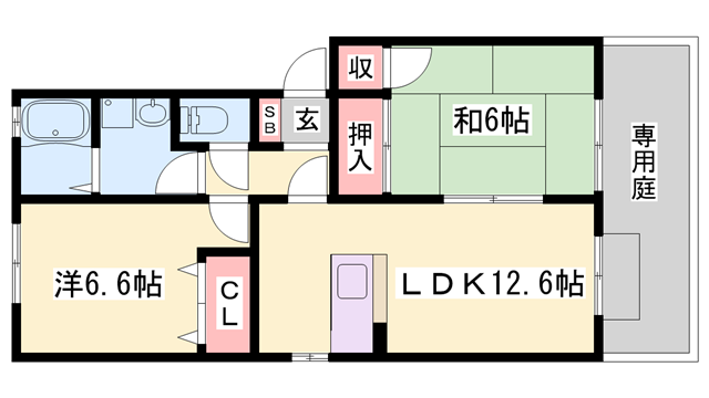 - LDK12.6帖、洋室6.6帖、和室6帖