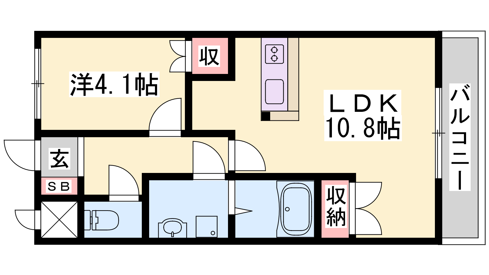 - LDK10.8帖、洋室4.1帖