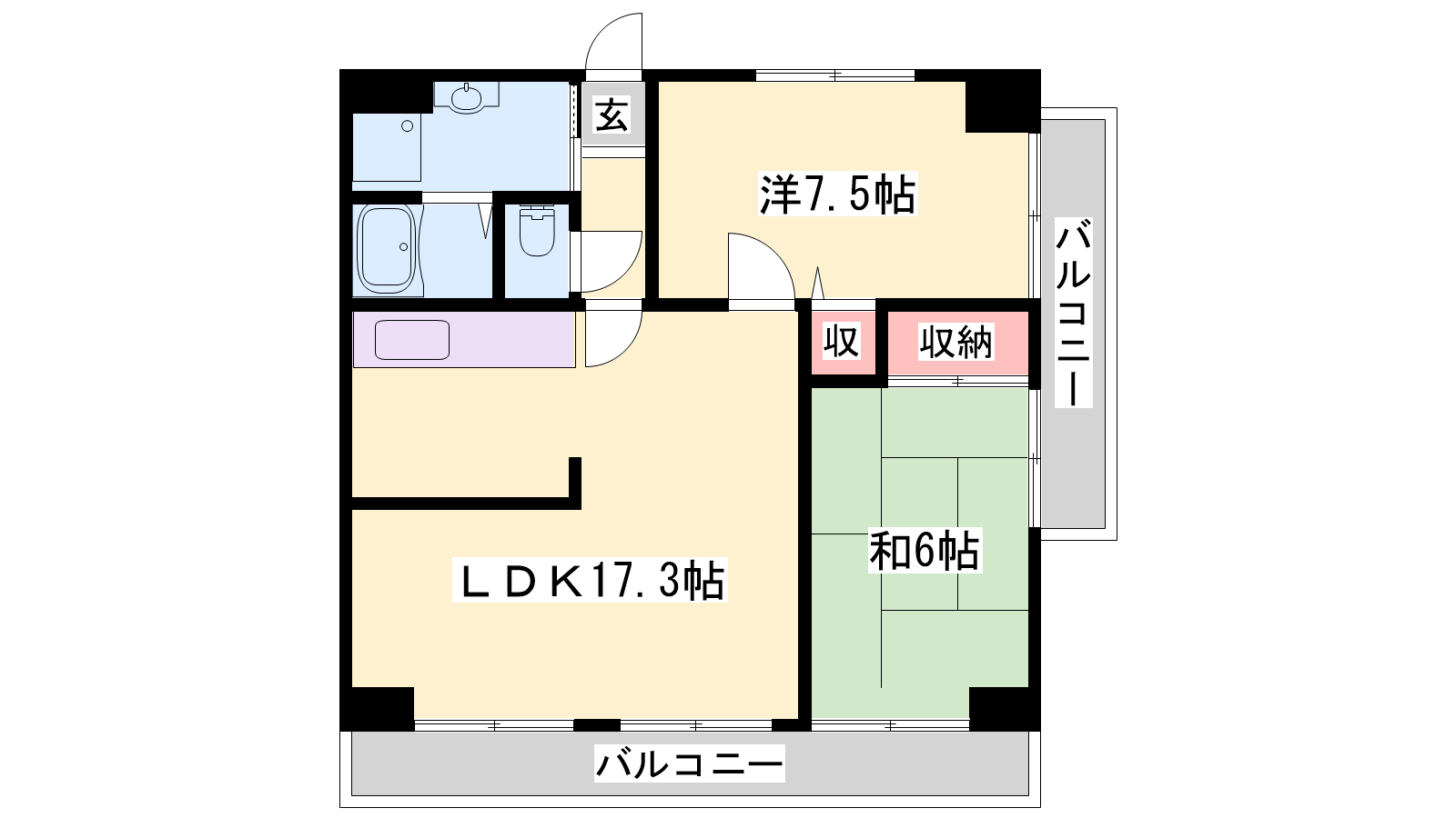 - LDK17.3帖、洋室7.5帖、和室6帖