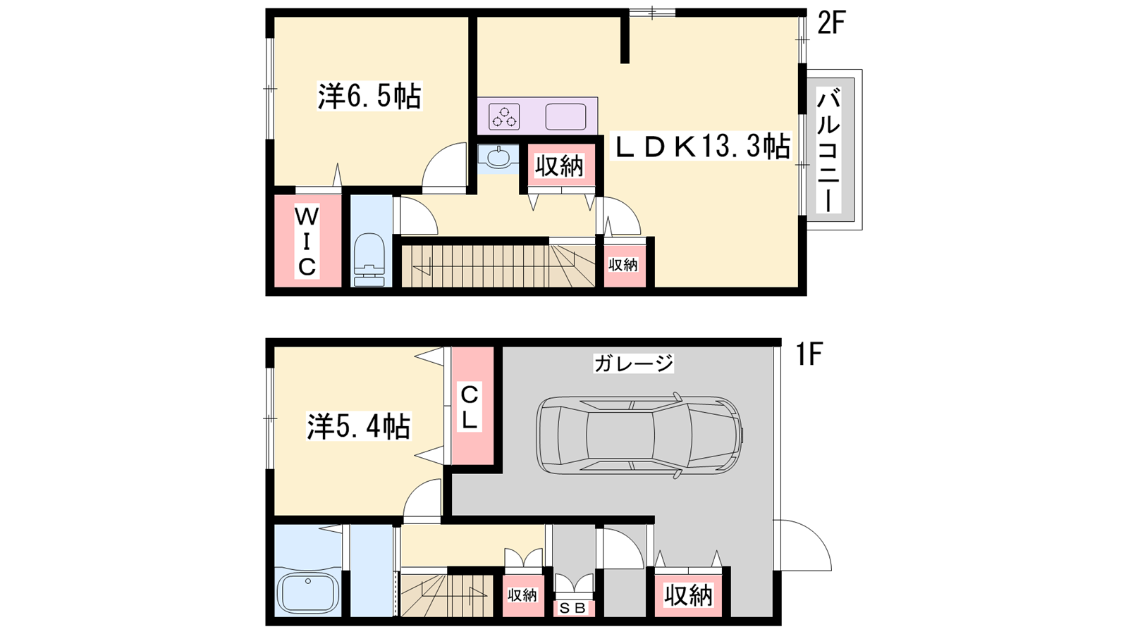 - LDK13.3帖、洋室6.5帖、洋室5.4帖