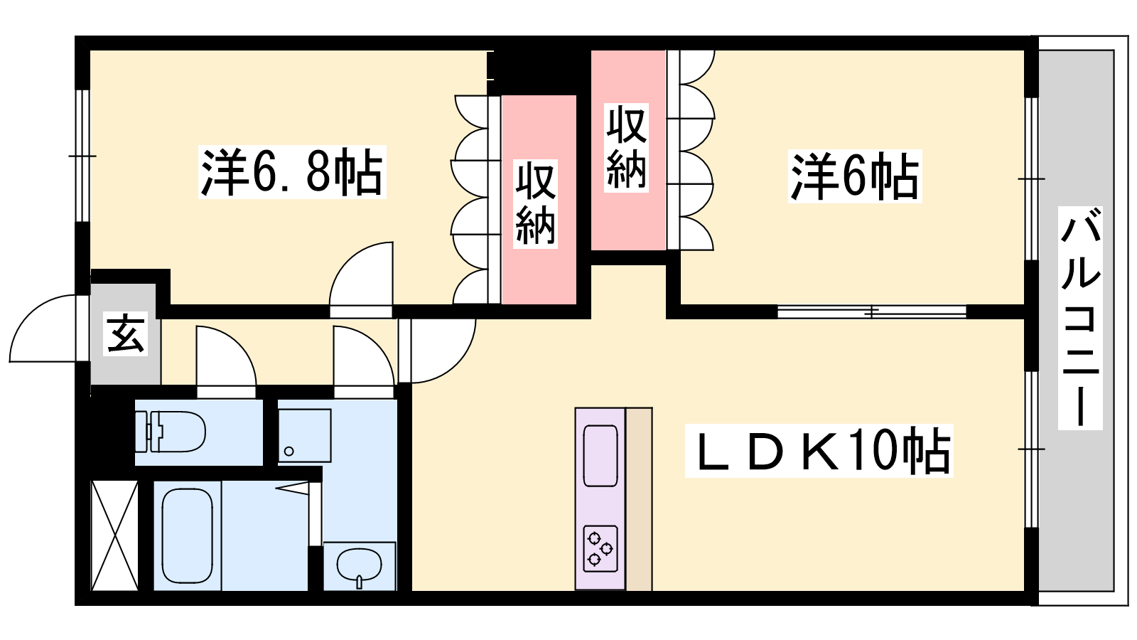 - LDK10帖、洋室6.8帖、洋室6帖