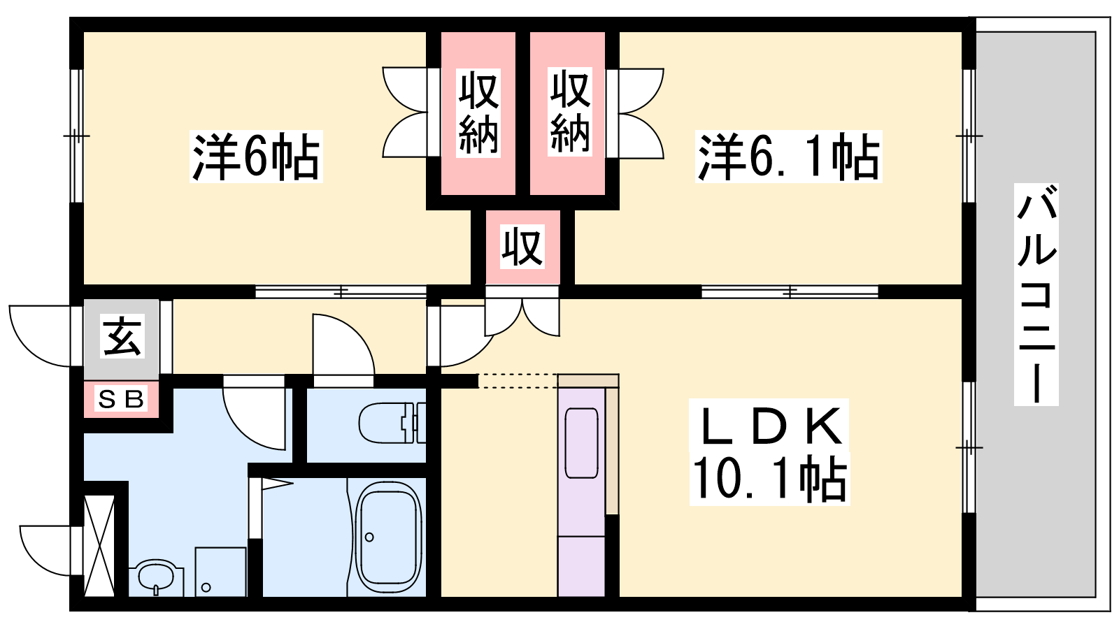 - LDK10帖、洋室6.1帖、洋室6帖