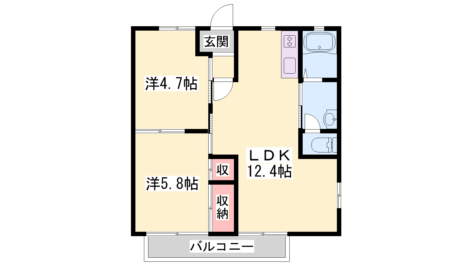 - LDK12.4帖、洋室5.8帖、洋室4.6帖
