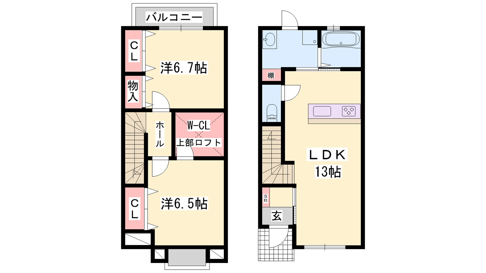 - LDK13帖、洋室6.7帖、洋室6.5帖
