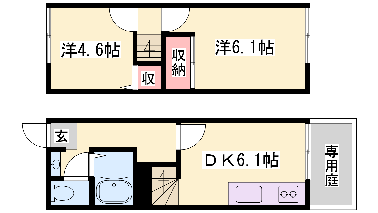 - DK6.1帖、洋室6.1帖、洋室4.6帖