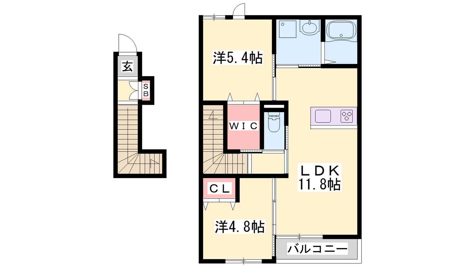 - LDK11.8帖、洋室5.4帖、洋室4.5帖