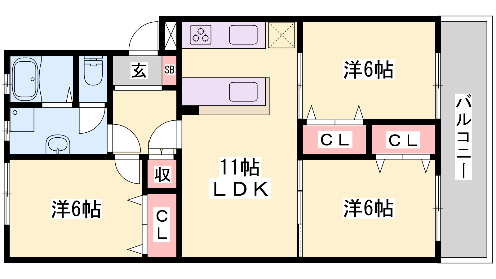 - LDK10帖、洋室6帖、洋室6帖、洋室6帖