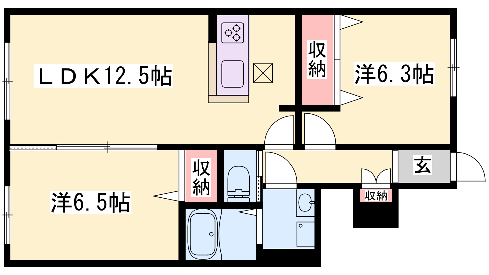 - LDK12.3帖、洋室6.5帖、洋室6.3帖