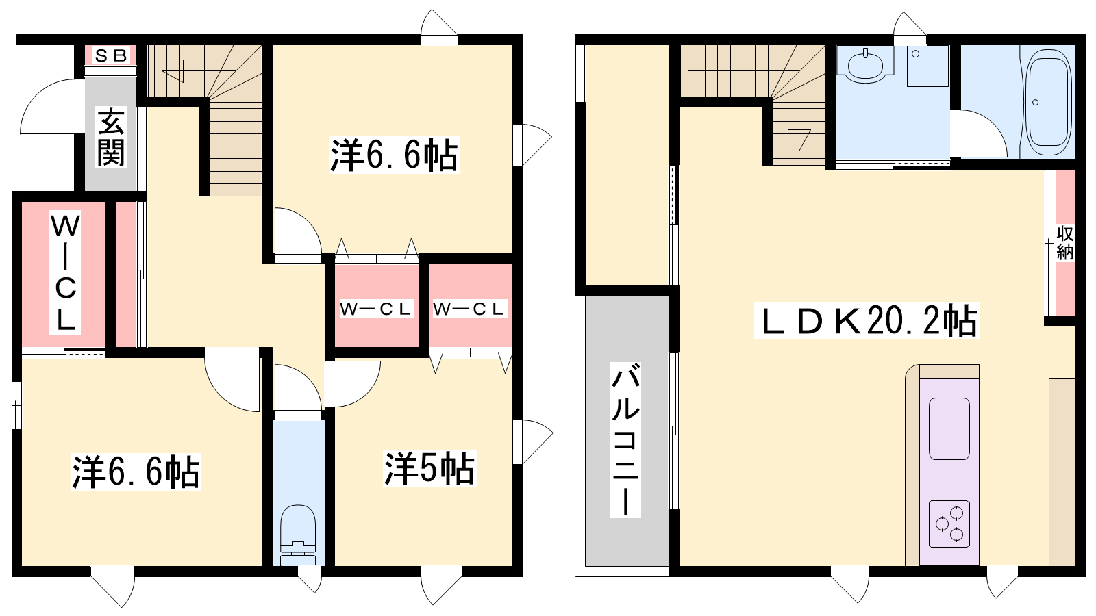 - LDK20.2帖、洋室6.6帖、洋室6.6帖、洋室5帖