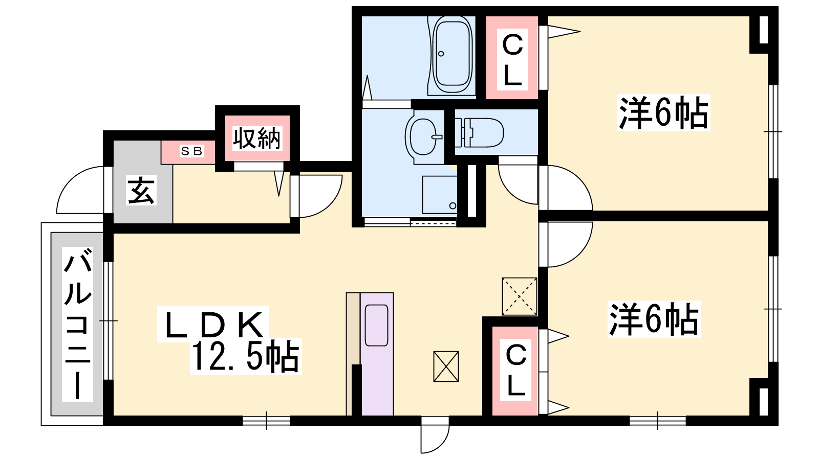 - LDK12.5帖、洋室6帖、洋室6帖