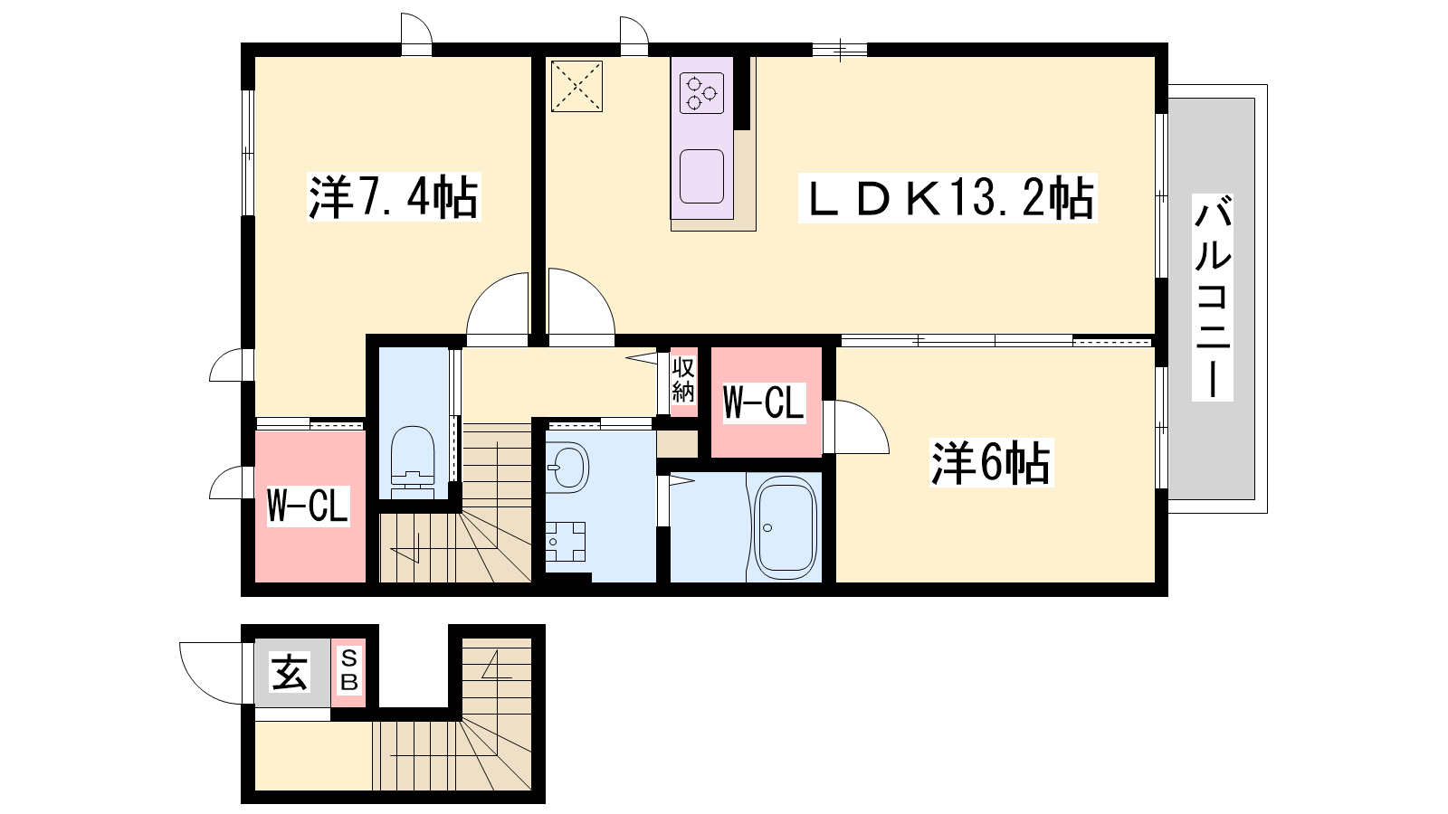 - LDK13.2帖、洋室7.4帖、洋室6帖