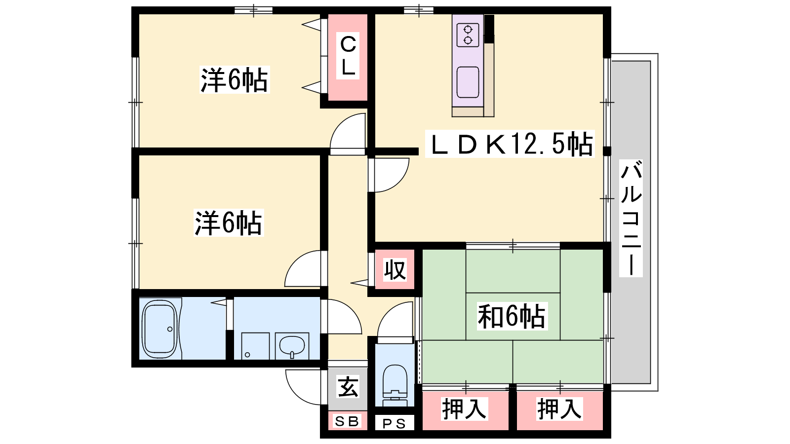 - LDK12.5帖、洋室6.5帖、洋室6帖、和室6帖