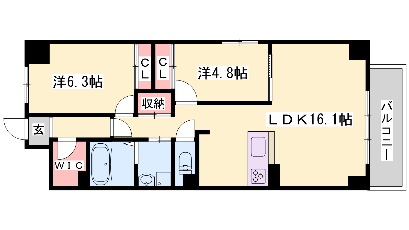 - LDK16.1帖、洋室6.3帖、洋室4.8帖