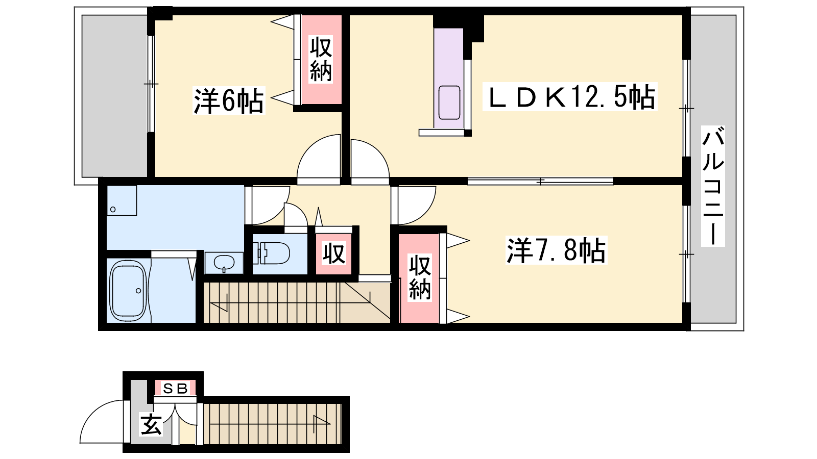- LDK12.5帖、洋室7.8帖、洋室6帖