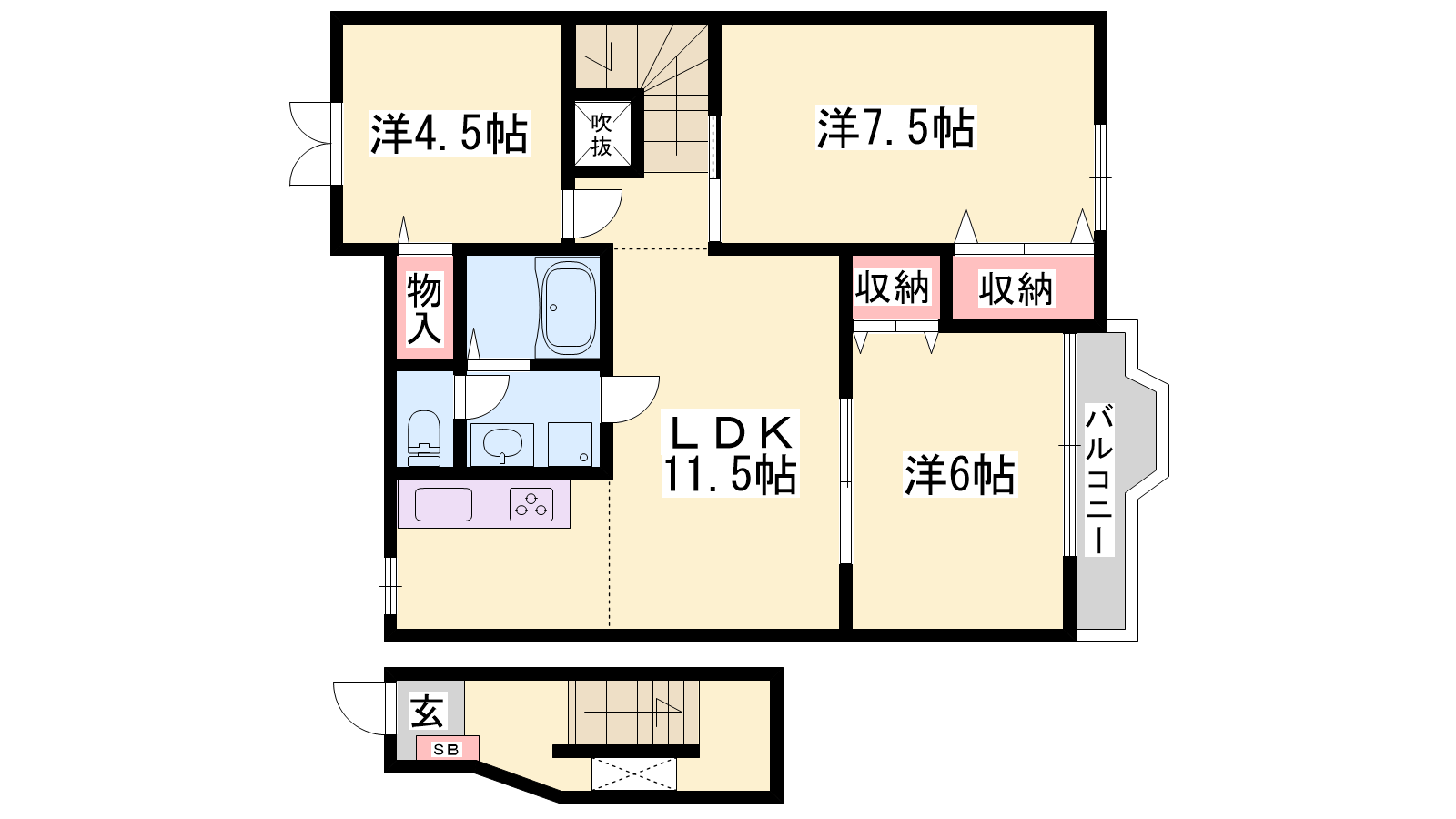 - LDK11.5帖、洋室7.5帖、洋室6帖、洋室4.5帖