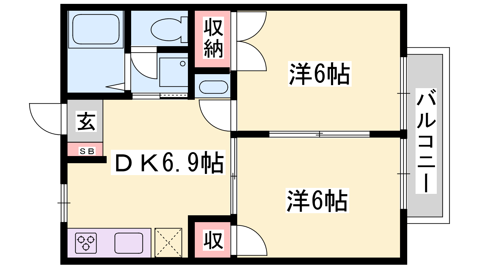 - DK6.9帖、洋室6帖、洋室6帖