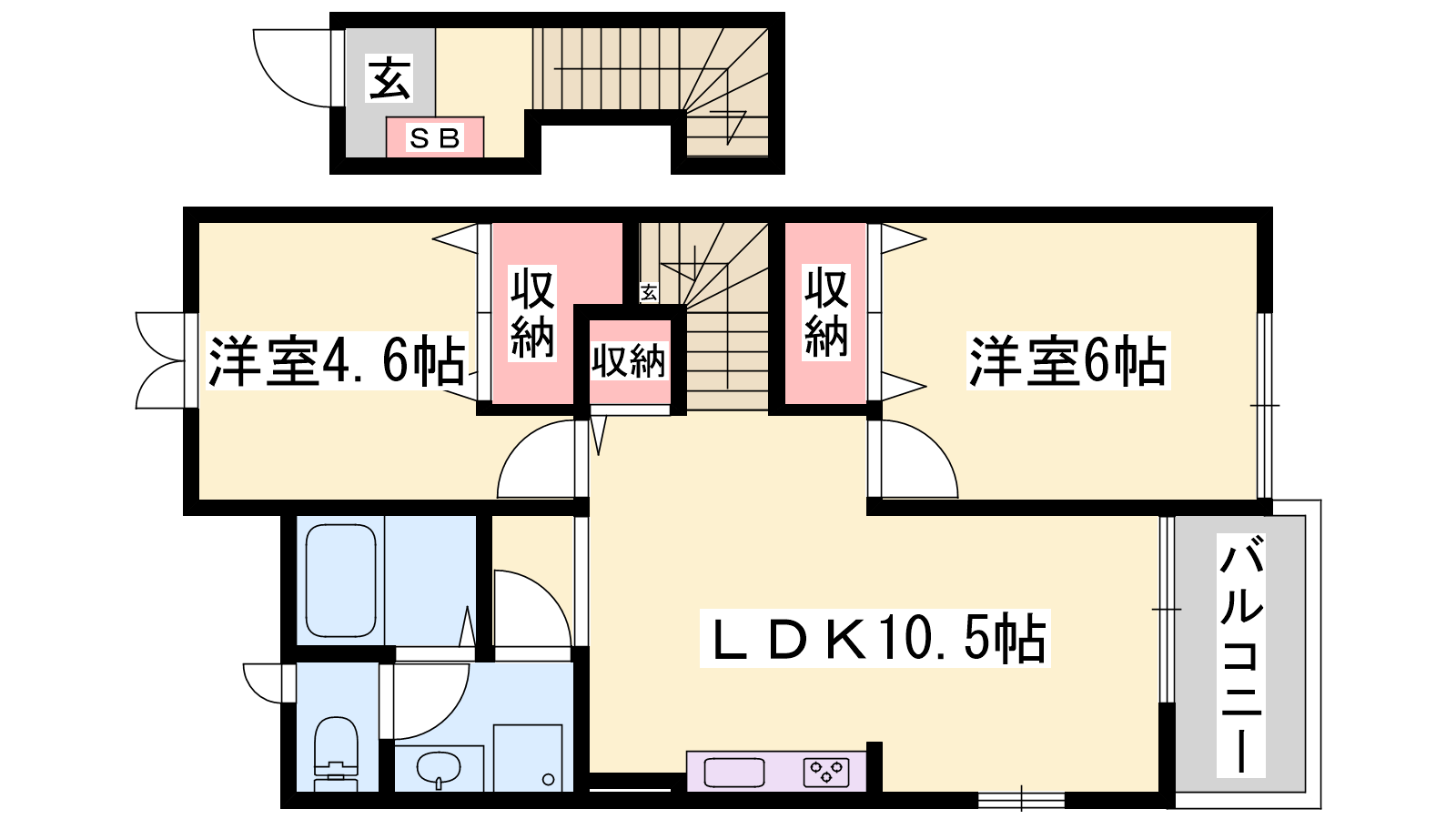- LDK10.5帖、洋室6帖、洋室4.6帖