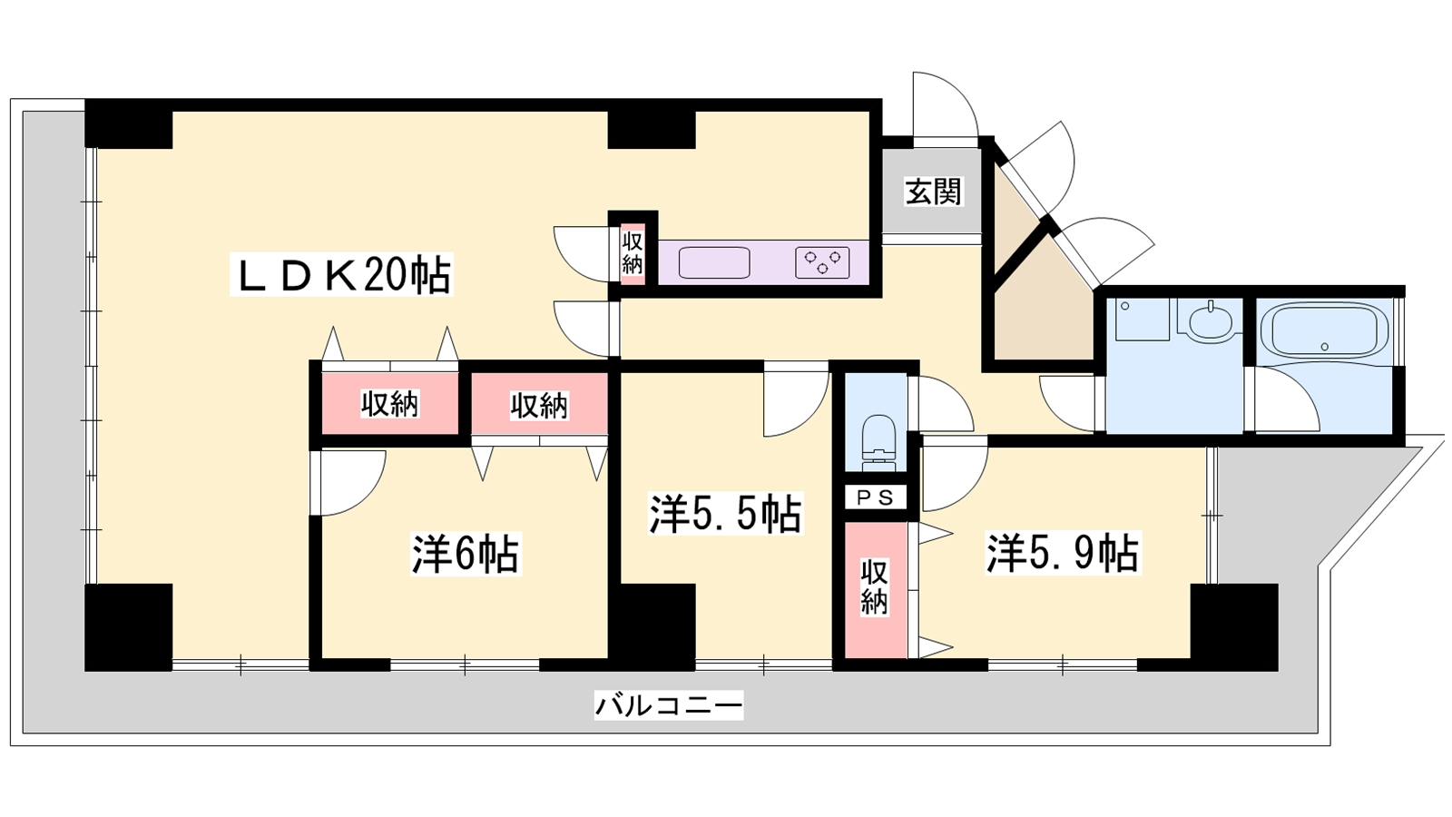 - LDK20帖、洋室6帖、洋室5.9帖、洋室5.5帖