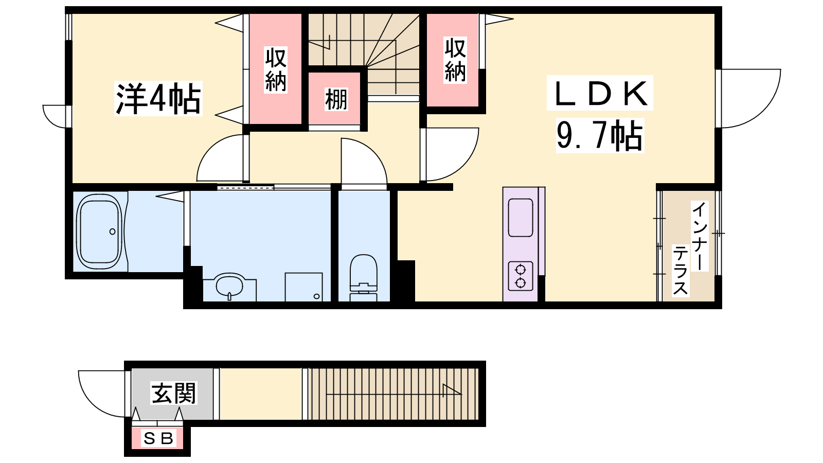 - LDK9.7帖、洋室4帖