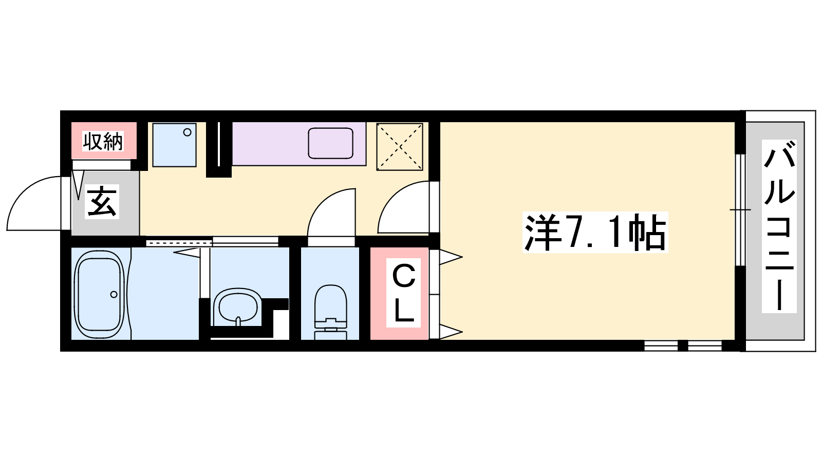 - K2帖、洋室7.1帖