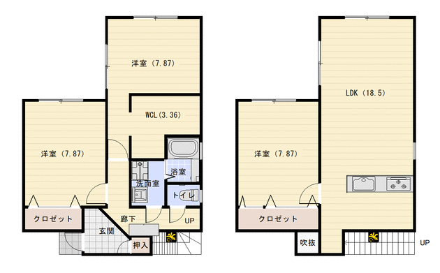 - LDK18.5帖、洋室7.87帖、洋室7.87帖、洋室7.87帖