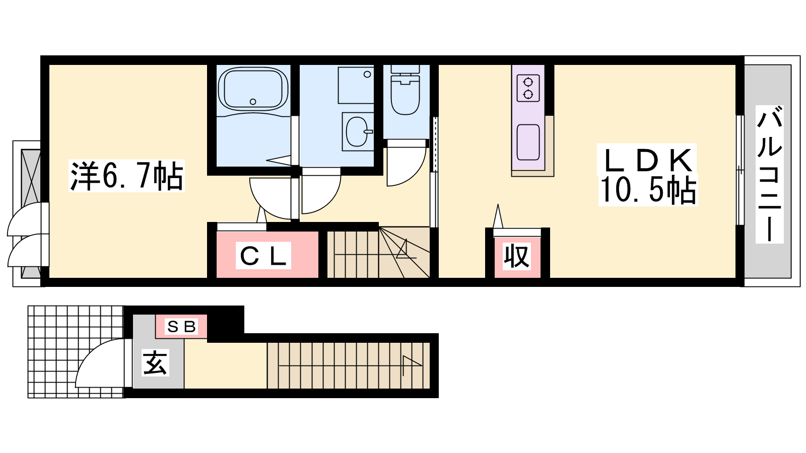 - LDK10.5帖、洋室6.7帖
