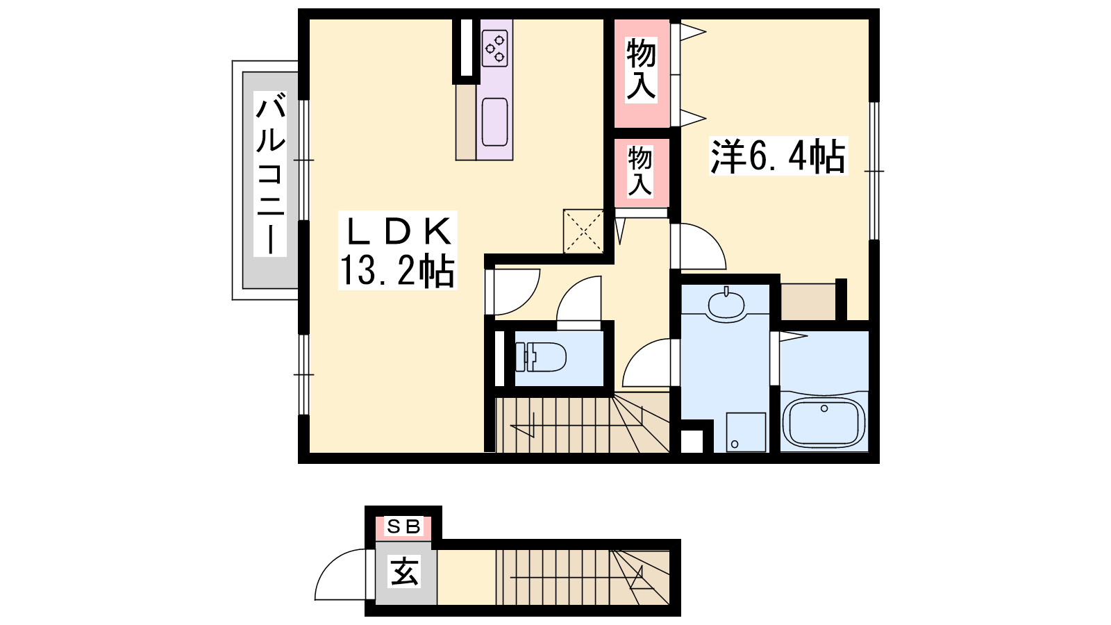 - LDK13.2帖、洋室6.4帖