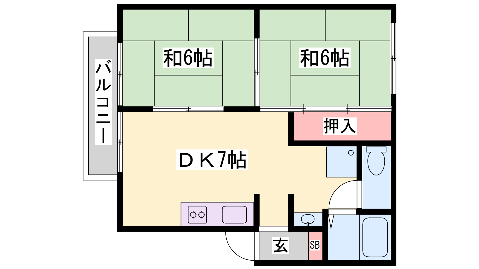 - DK7帖、和室6帖、和室6帖