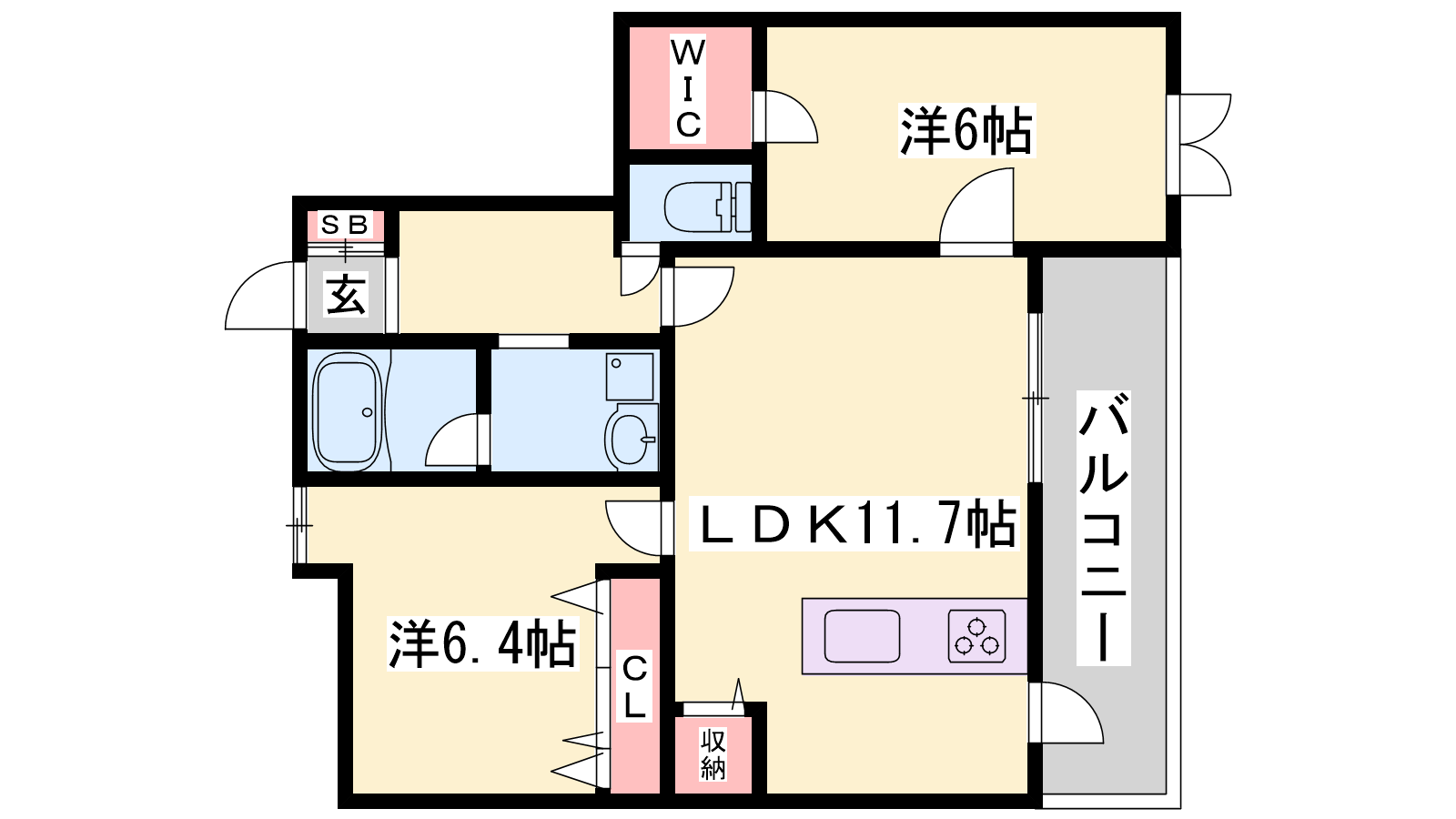 - LDK11.7帖、洋室6.4帖、洋室6帖