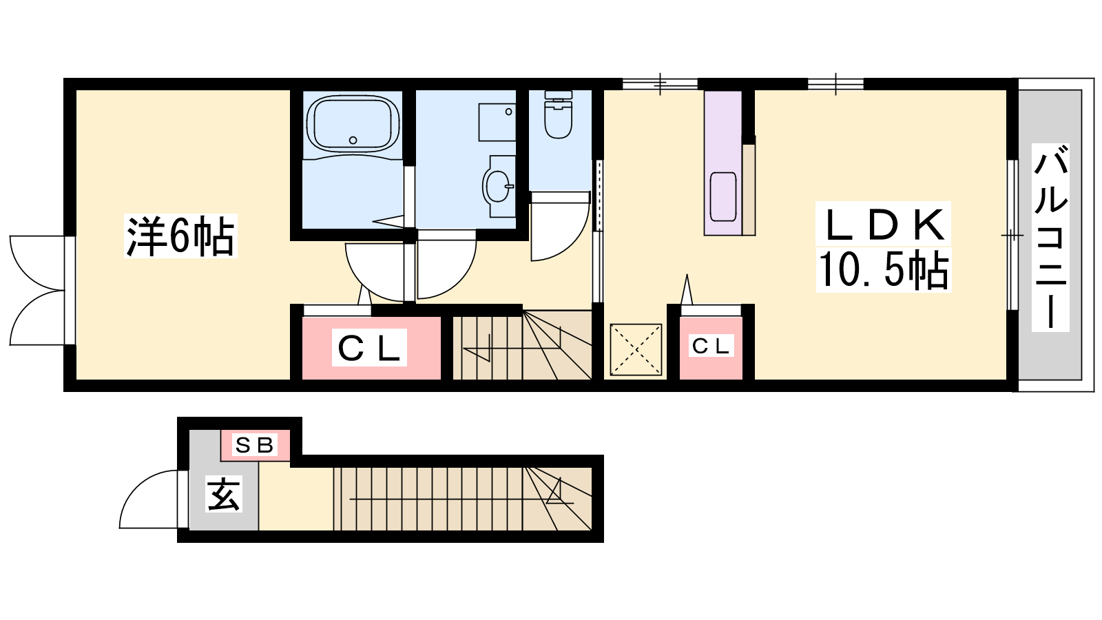 - LDK10.5帖、洋室6.7帖