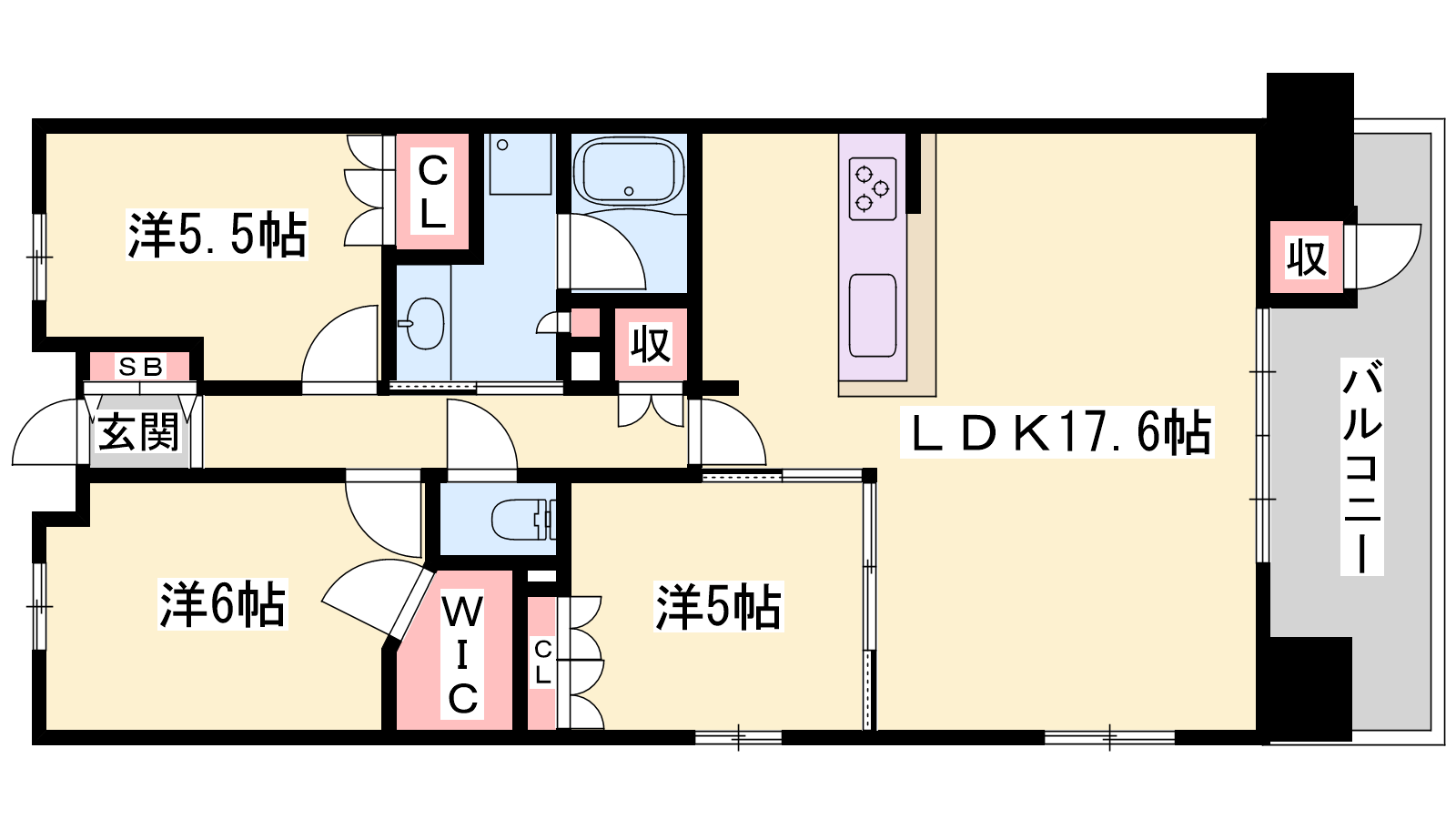 - LDK17.6帖、洋室6帖、洋室5.5帖、洋室5帖