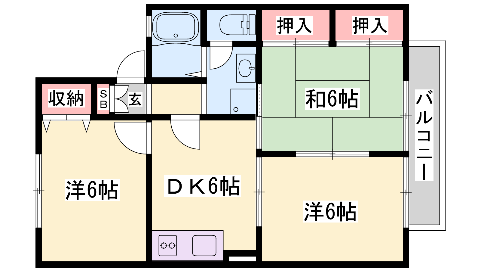 - DK6帖、洋室6帖、洋室6帖、和室6帖