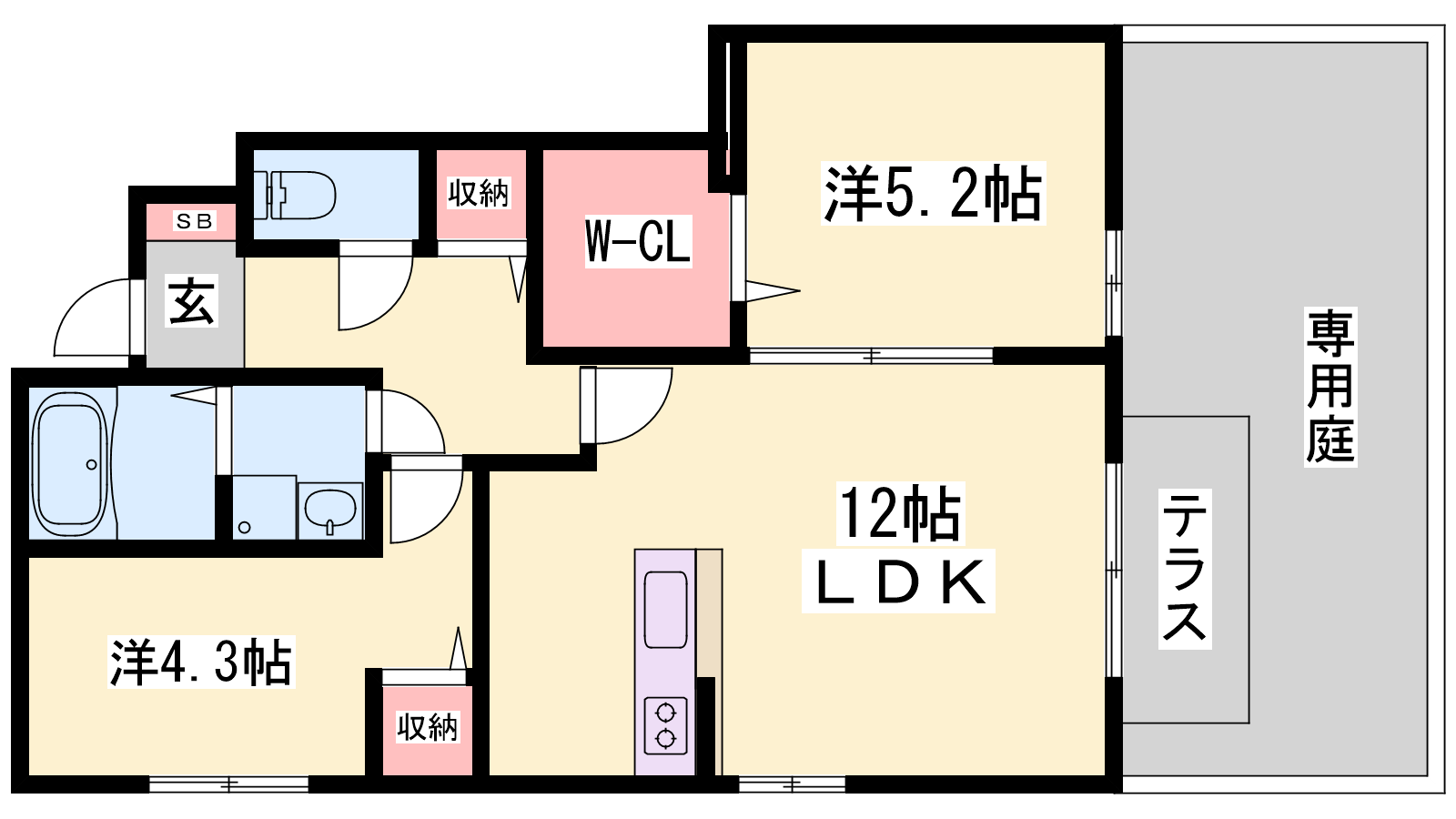 - LDK12帖、洋室5.2帖、洋室4.3帖