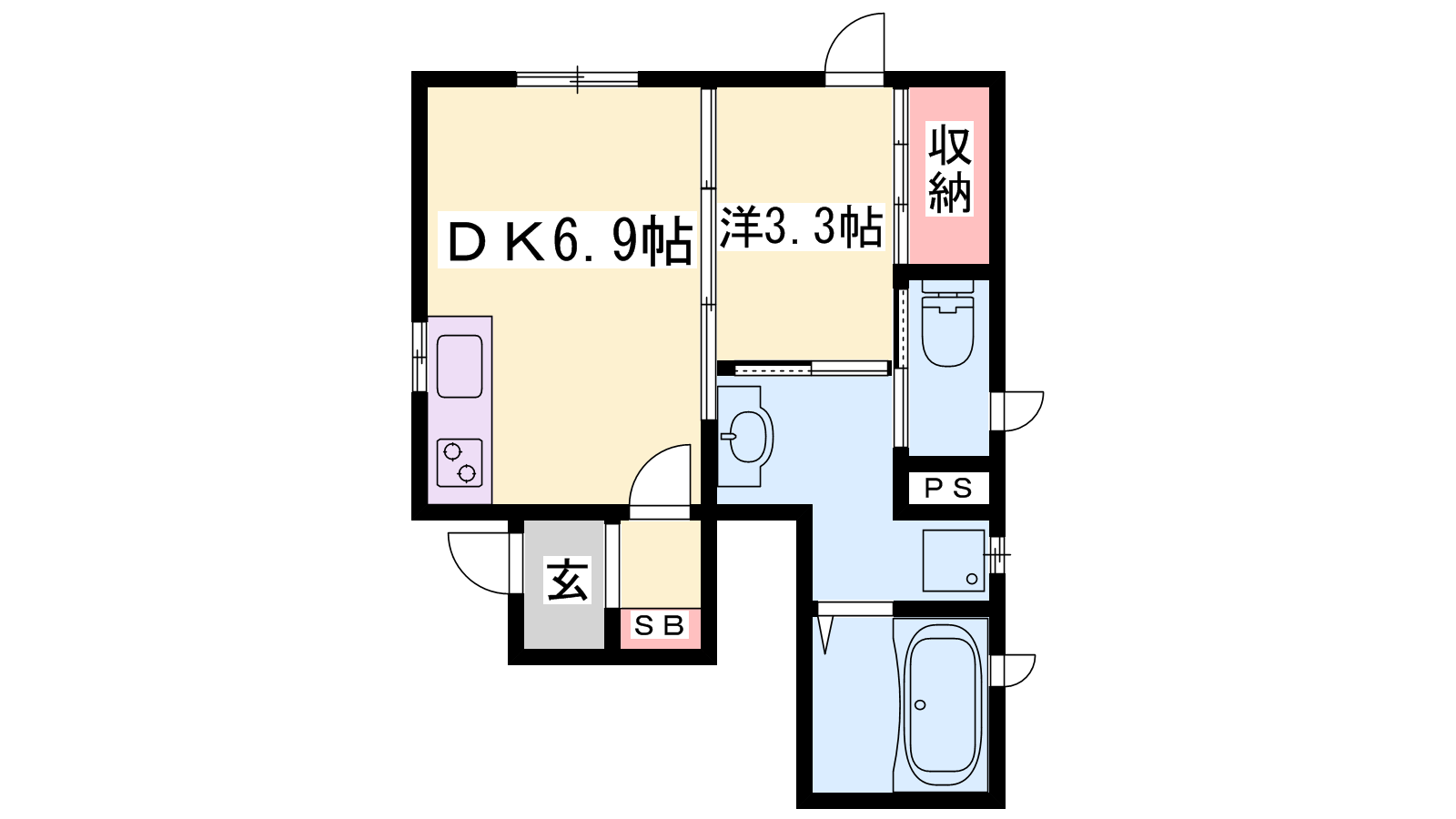 - DK6.9帖、洋室3.3帖