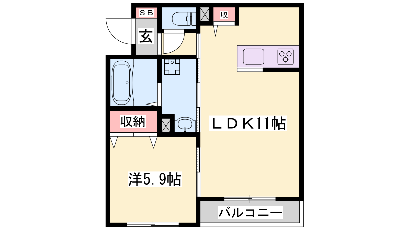 - LDK11帖、洋室5.9帖