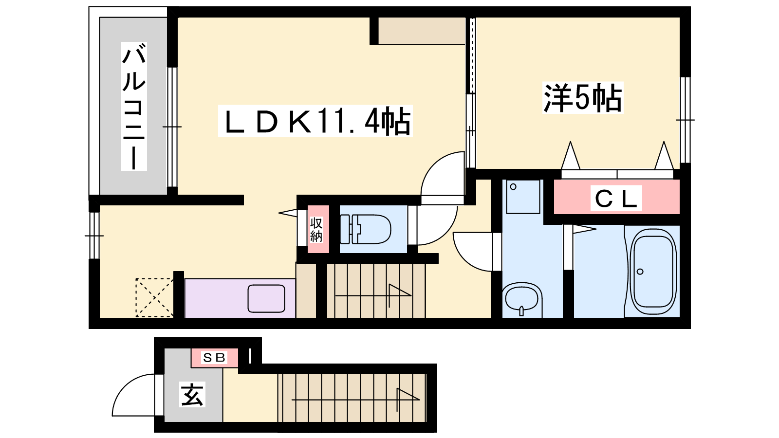 - LDK11.4帖、洋室5帖