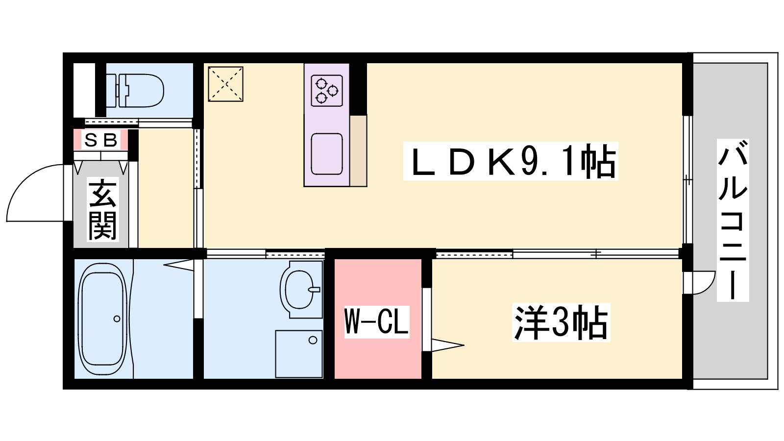 - LDK9.1帖、洋室3帖