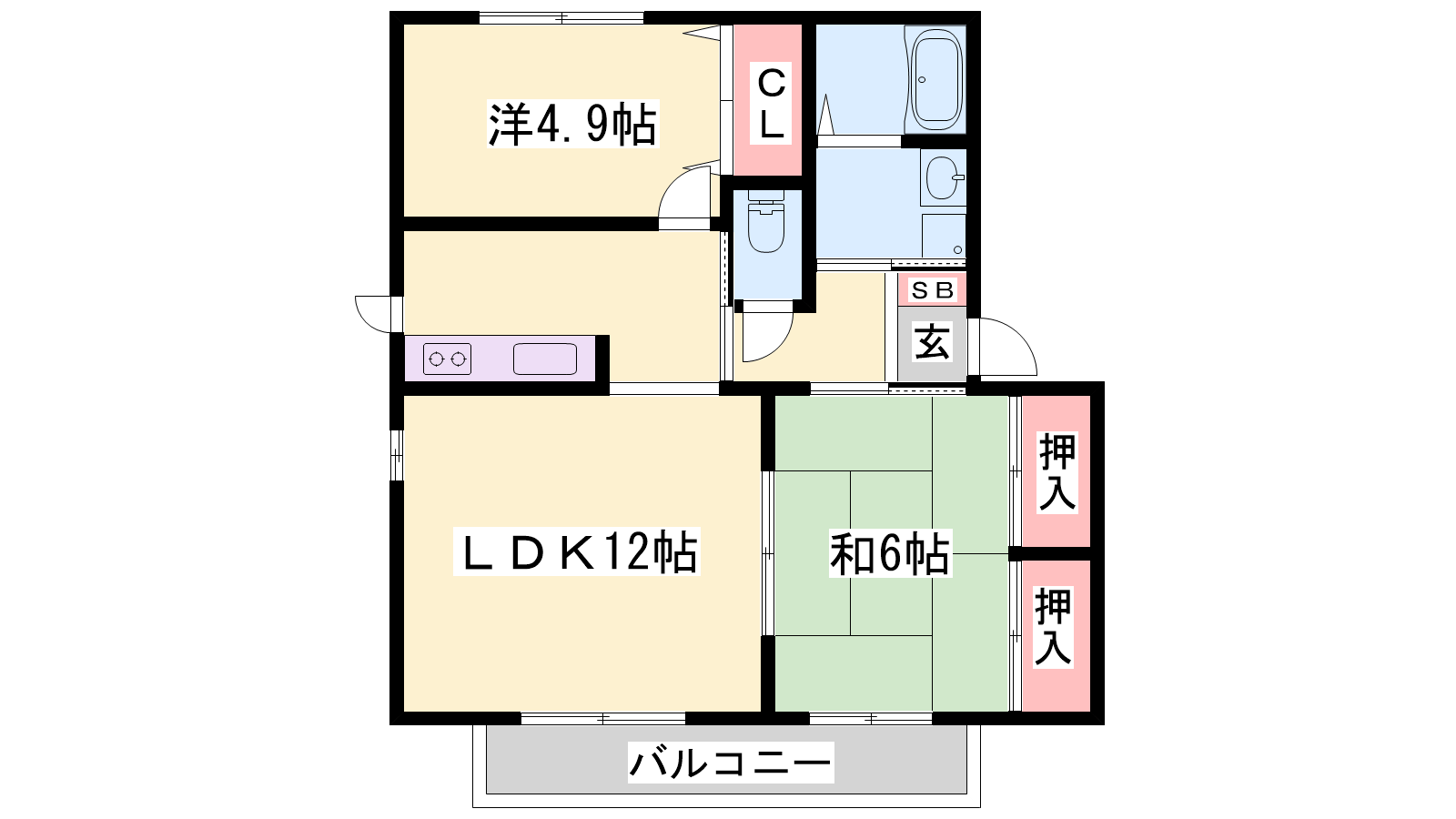 - LDK12帖、洋室4.9帖、和室6帖