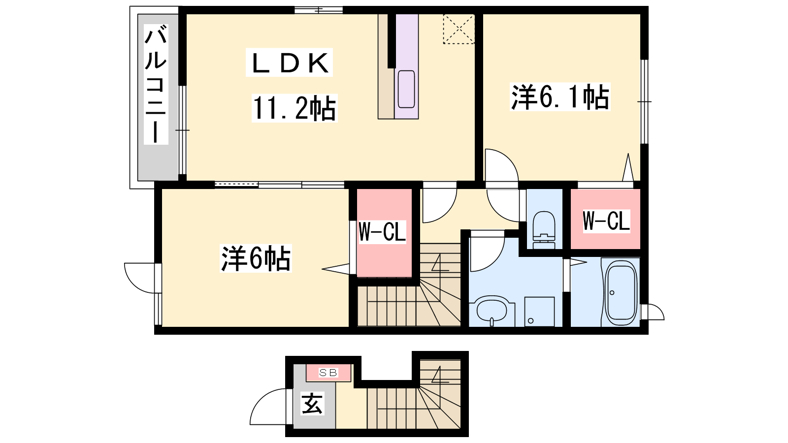 - LDK11.2帖、洋室6.1帖、洋室6帖