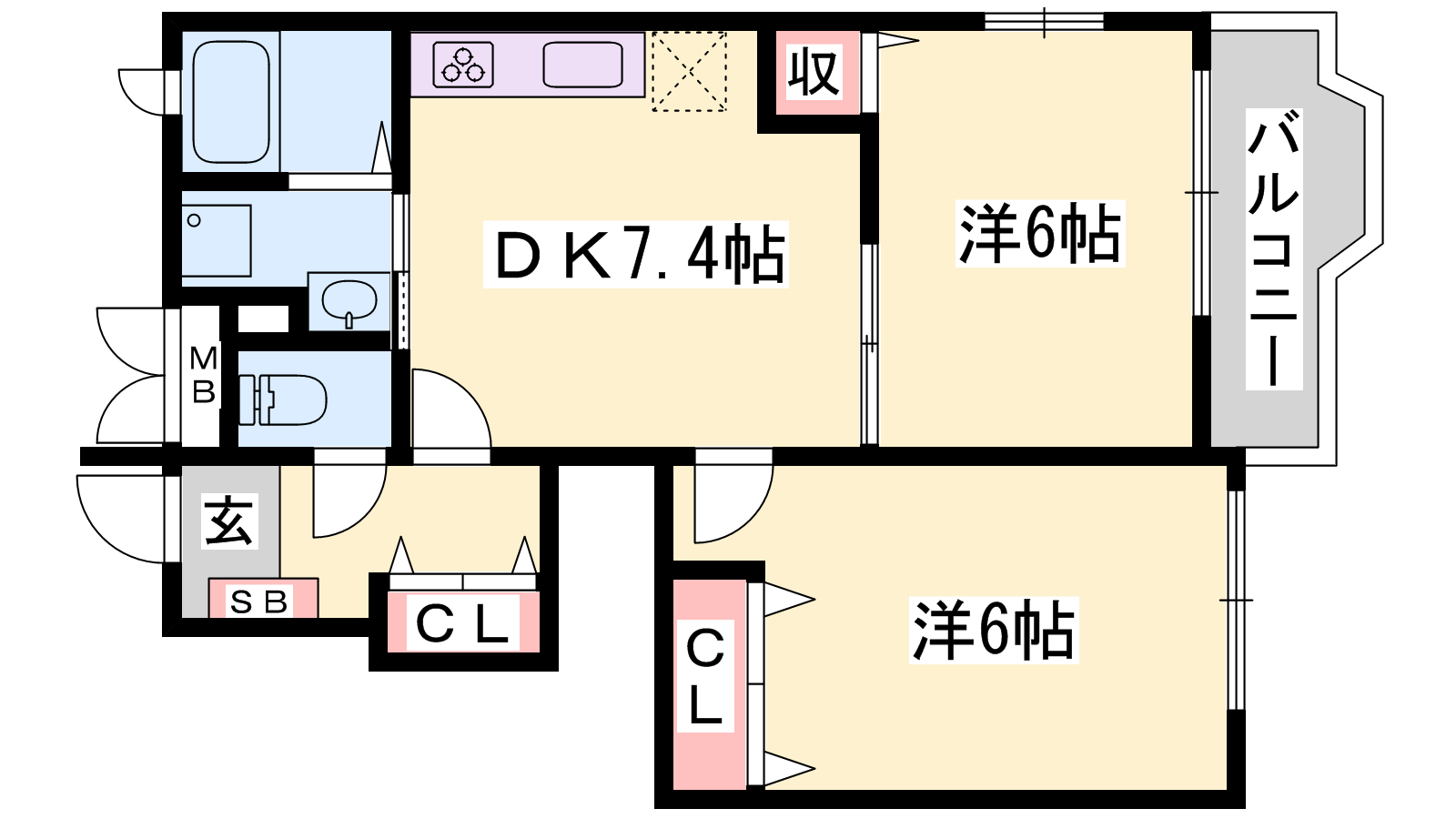 - DK7.4帖、洋室6帖、洋室6.4帖