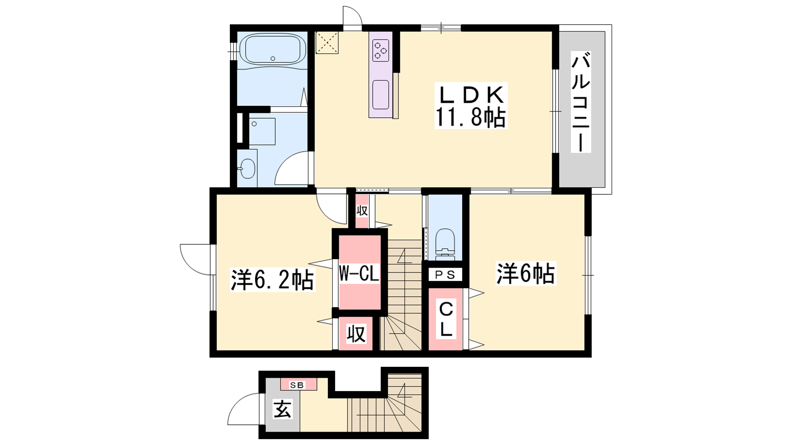 - LDK11.8帖、洋室6.2帖、洋室6帖