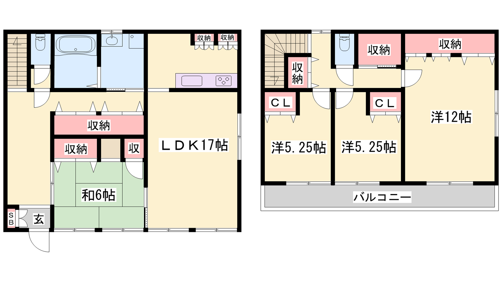 - LDK17帖、洋室12帖、洋室5.2帖、洋室5.2帖、和室6帖