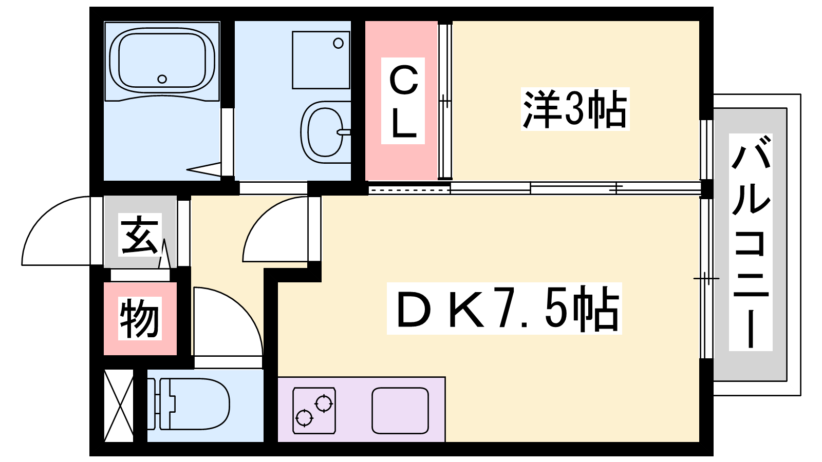 - DK7.5帖、洋室3帖