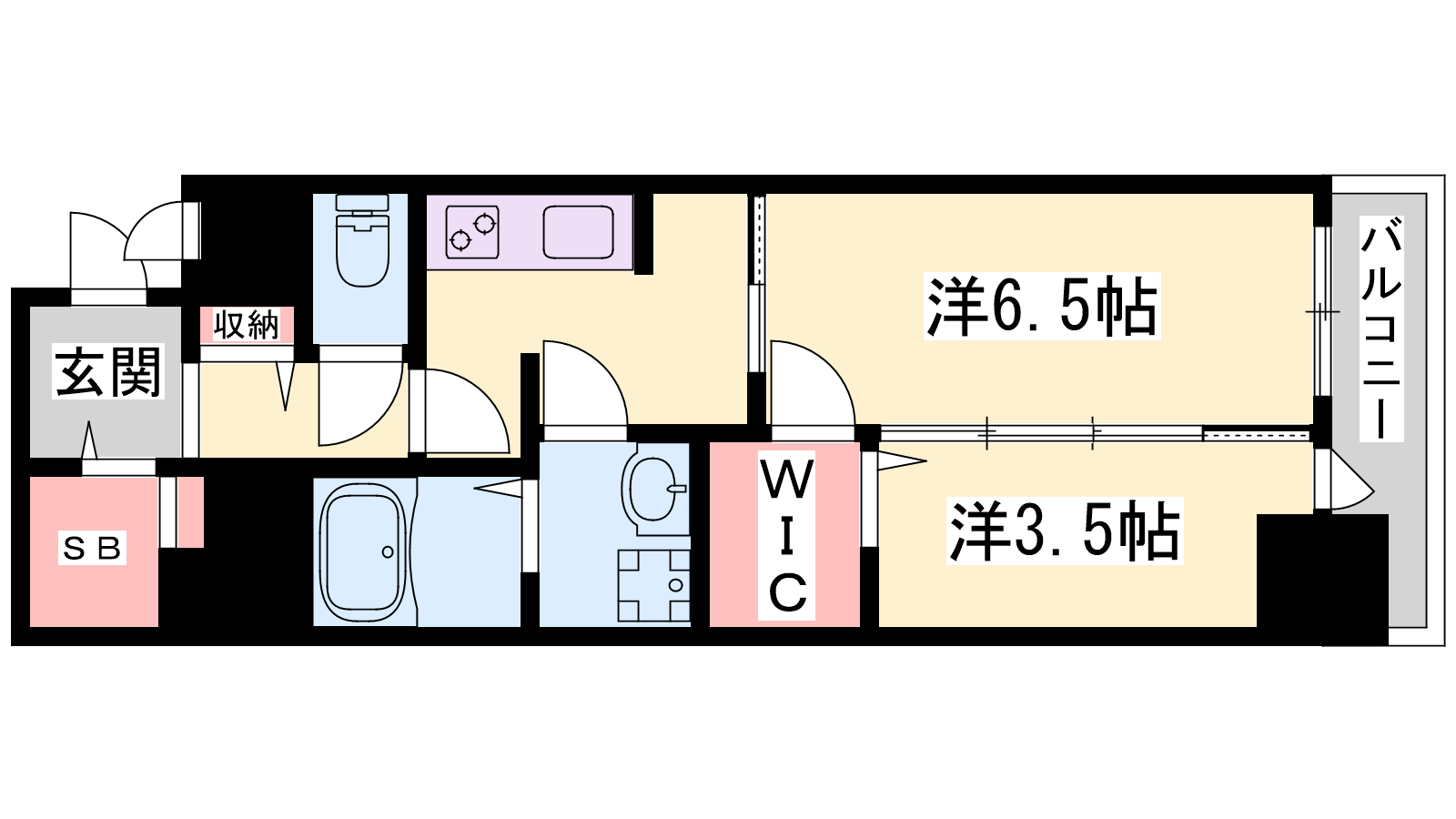 - 洋室6.5帖、洋室3.5帖